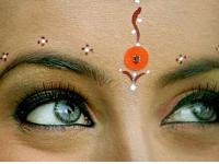 Bindi zazwyczaj mozna opisac jako tradycyjny malowanie na czole przez hinduski . Okreslenie "Bindi" wywodzi sie z sanskrytu slowo "bindu" tzn. "kropla lub niewielka kropke lub czastek.. Chociaz tradycyjnie Bindi ma ksztalt kropki w czerwonym kolorze, moze byc noszone takze w innych kolorach, takich jak zólty, pomaranczowy i tak dalej. Ksztalt i wielkosc Bindi równiez moga byc rózne.